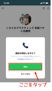 A以下の画面が出たら、「通話」ボタンをタップします。